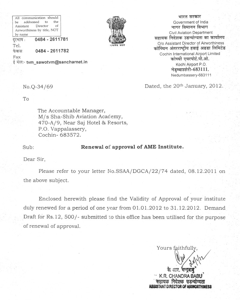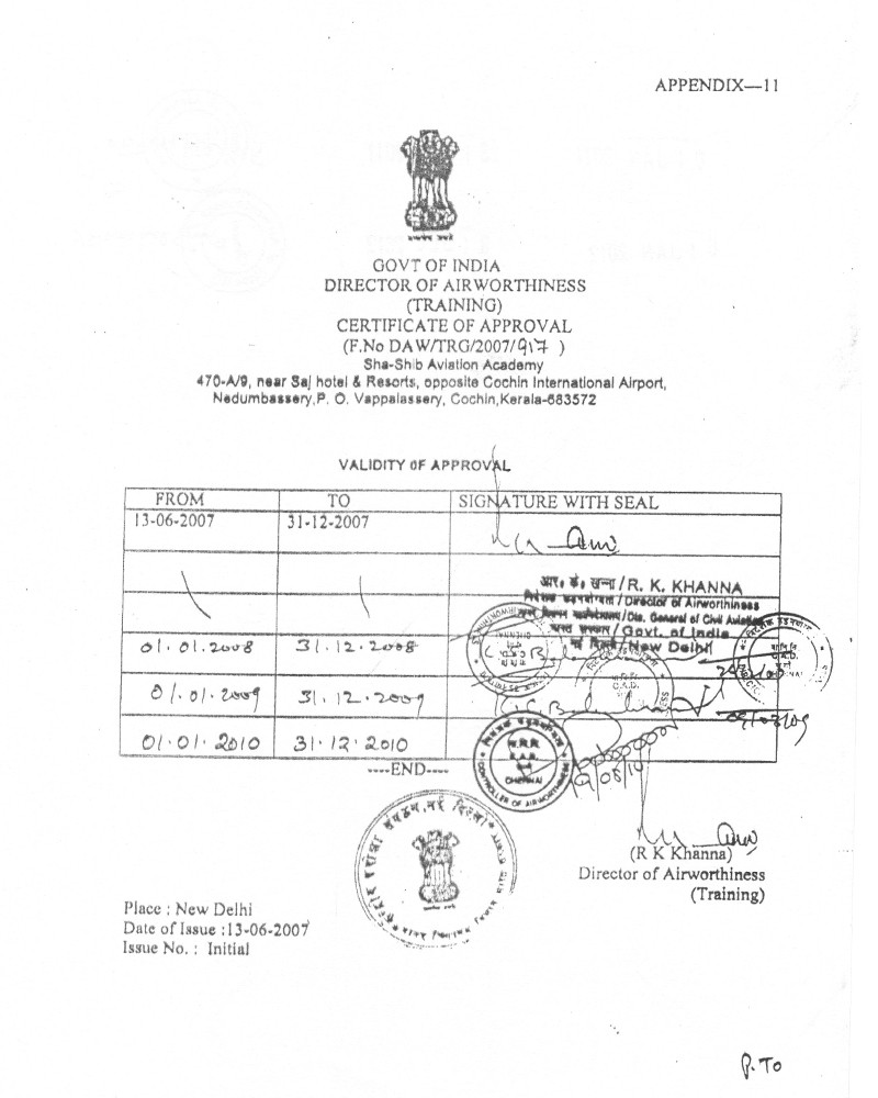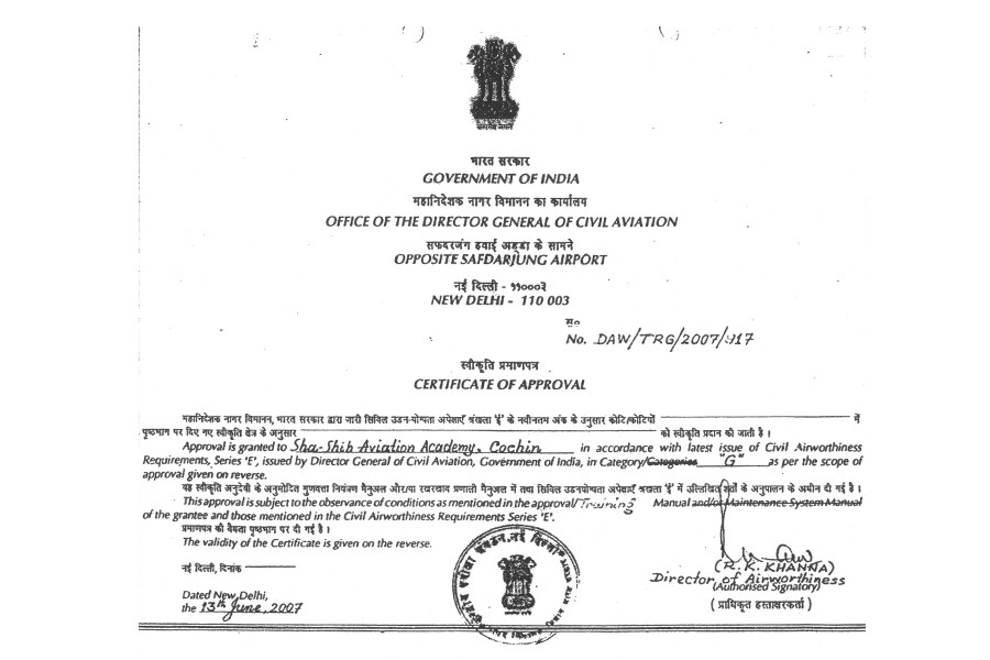 Sha-Shib Aviation Academy is purely a Technical Institute which is approved by Director General of Civil Aviation, (Govt. of India) for Three Years course in Aircraft Maintenance Engineering at Cochin center.